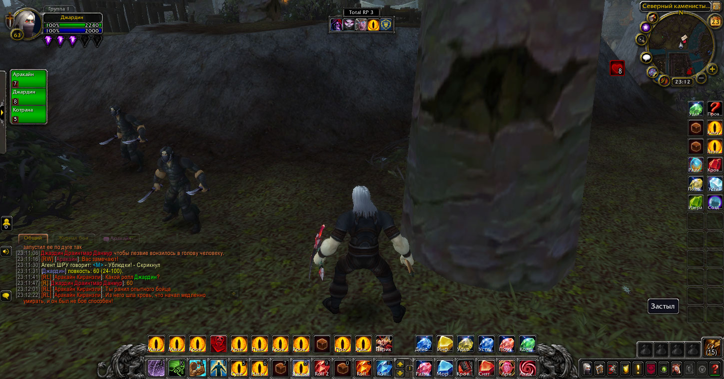 В это время отрекшаяся решила присоединиться к сражению и вылезла из своего укрытия. Не мертвая принялась колдовать на раненом воине тем самым добивая бедного человека своими магическими навыками. Выживший кинулся на Джардина и вступил с ним в схватку на клинках. Кровопийца уклонялся и парировал удар противника, а после нанес рассекающий взмах своего клинка тем самым серьезно ранив воина в живот. Сзади со спины на оставшегося в живых человека прыгнула отрекшееся. Та не смогла стоять в стороне и попыталась помочь. Человек понял, что ему конец, поэтому попытался взорвать себя с помощью гранаты. Ударная волна задела Джардина откинув того в дерево. Тот конечно ощутил как его откинуло в дерево, но боли он таковой не почувствовал. Последний выживший был взорван своими усилиями. Отрекшееся успела среагировать и перед самим взрывом отпустила пленника и спряталась за камнем от ударной волны.