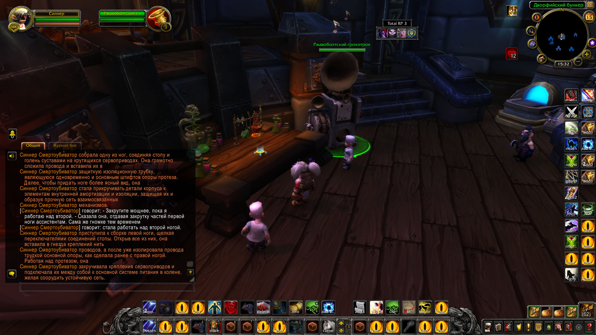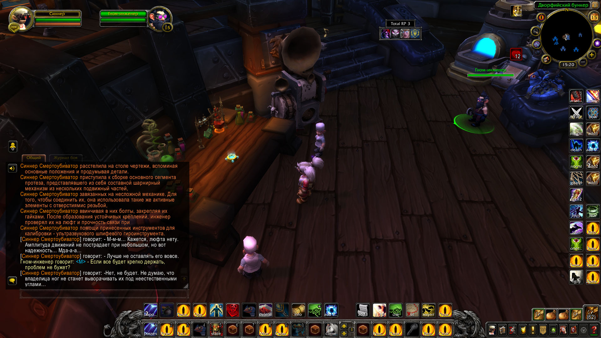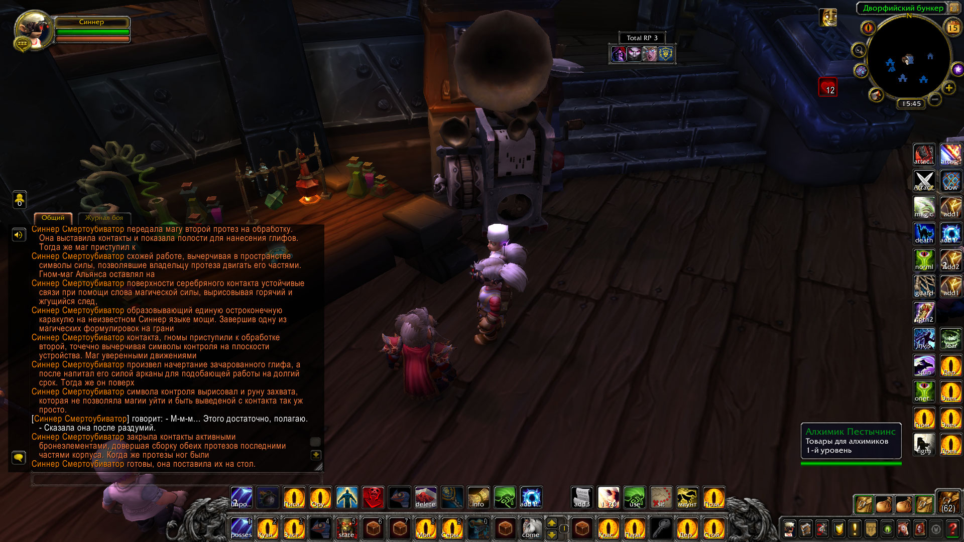 Ролевые итоги: Синнер и рабочие мастерской Альянса сумели собрать протезы ног модели Убиватор-Убегатор для эльфийки Аларисс. Они были собраны и зачарованы, полностью подготовлены к установке.