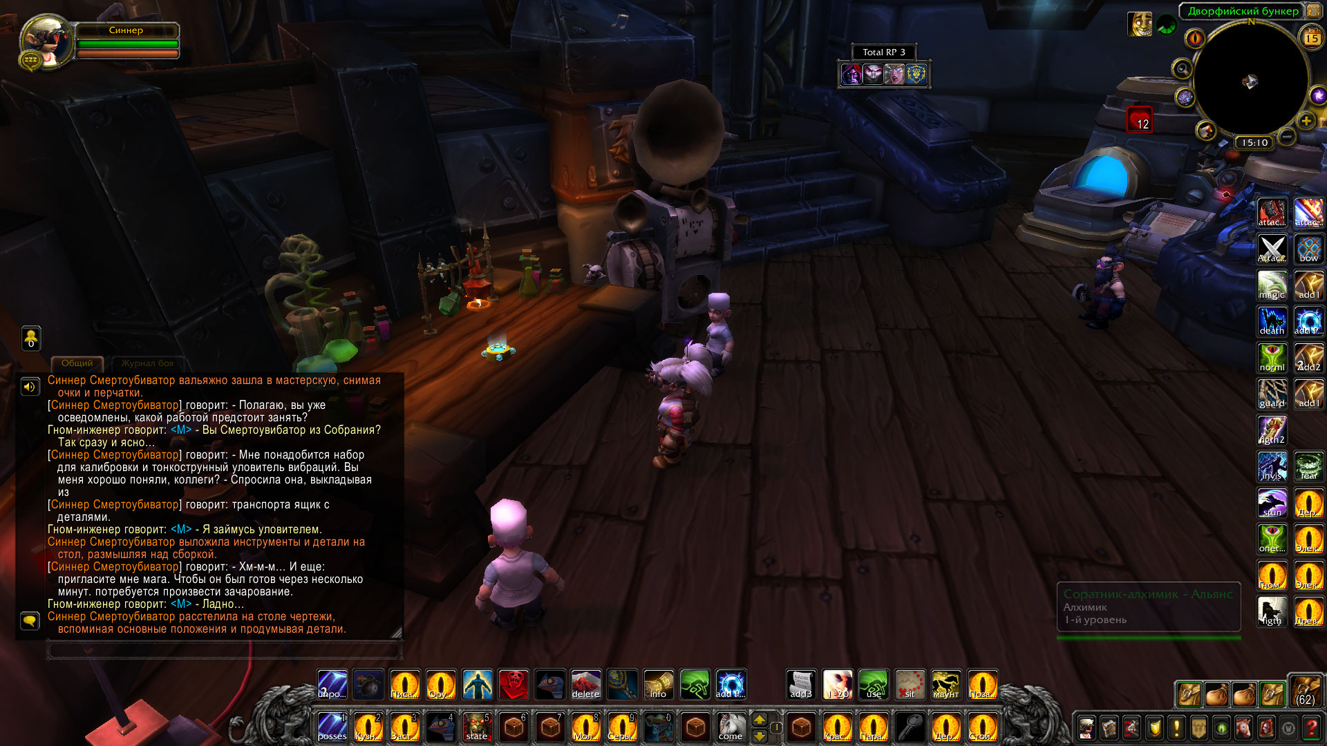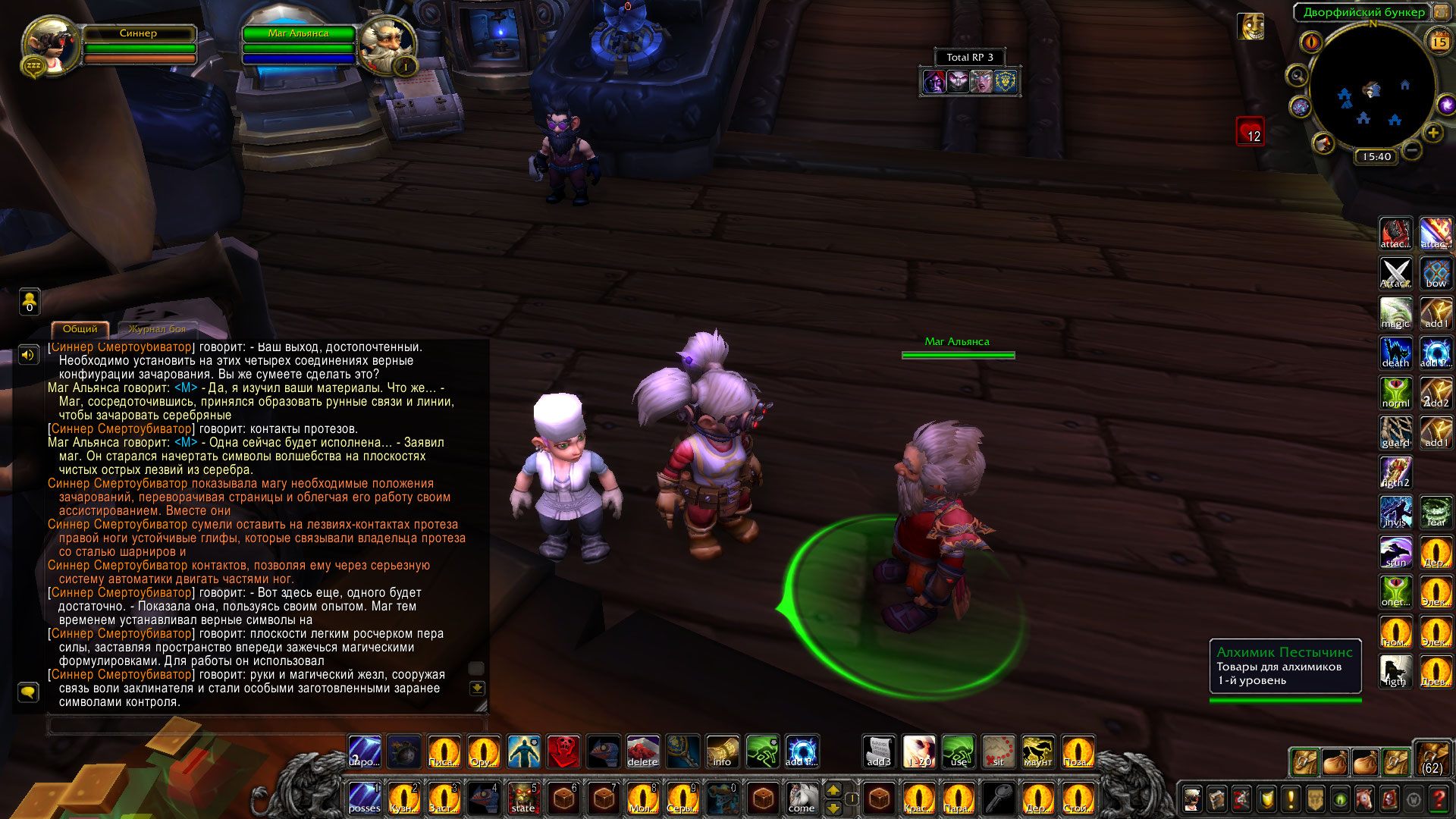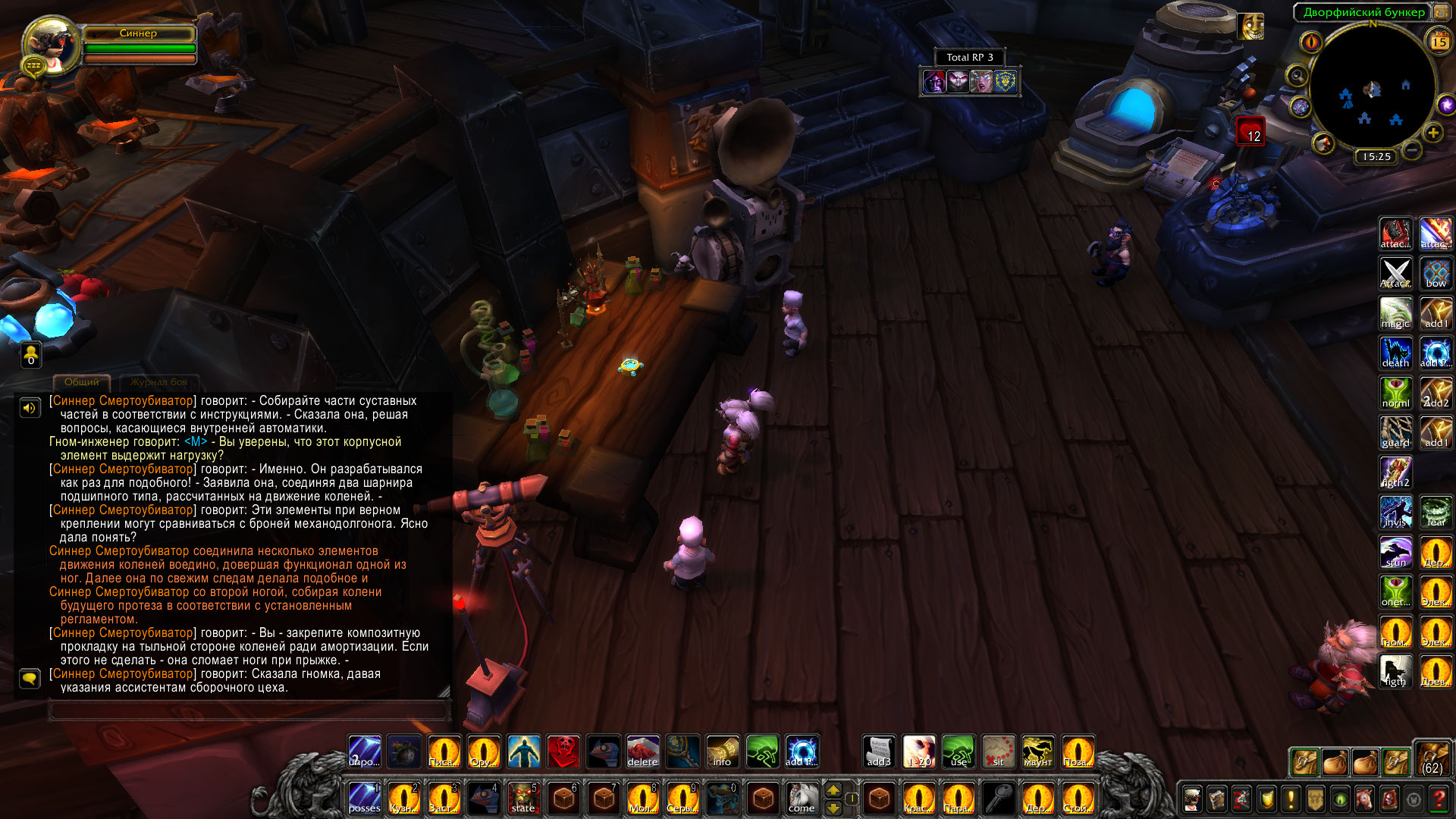 Ролевые итоги: Синнер и рабочие мастерской Альянса сумели собрать протезы ног модели Убиватор-Убегатор для эльфийки Аларисс. Они были собраны и зачарованы, полностью подготовлены к установке.