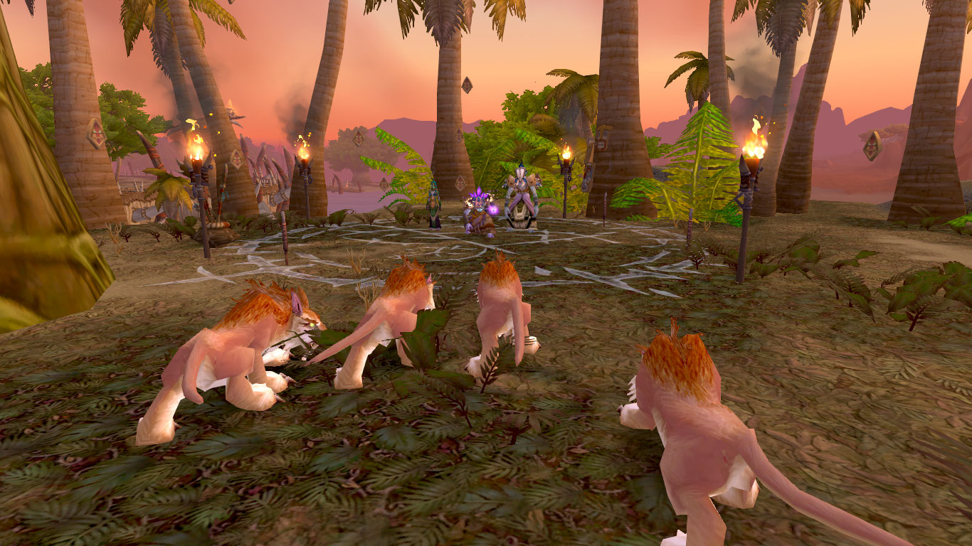 Ви'Траз (Мистический Клинок) собрался на мосту, пока я восхищался прекрасным пейзажем островов, одновременно обдумывая несколько важных моментов. Когда все собрались, молодая зульфи поведала им о цели нашего сбора. Для разговора с духами нам было необходимо устроить охоту на буйногривых рысей, которые расплодились на островах больше вепрей. Зул сказал, что из рысей выйдет отличное подношение духам.