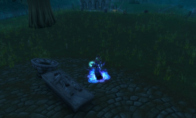 Подойдя ближе он начал рассматривать своего будущего слугу. Он понял, что это был какой-то великий человек, поэтому ему было бы сложно его поднять но он казался сильным поэтому Некромант всё же решился. Одно дело поднять обычного рядового, но другое поднять человека сильного духом. Он достал свою книгу Мёртвых и принялся читать и искать где было написано про возрождение Паладинов которые служат своему мерзкому Свету. Найдя страницу он понял, что это потребовало бы много энергии которую у него не было. Он принялся чертить вокруг могилы Руны Плети которые бы компенсировали бы эту энергию. После тридцати минут приготовления к Воскрешению он принялся читать заклинание. Он читал заклинание словно это было некое песнопение, но это было не так хоть и очень схоже. Из его рук пошли чары темно-синего цвета они окутывали могилу которые, лились из его рук. Руны начали святиться еще сильнее. Посох так же брал на себя немного энергии. Он читал и читал заклинание шепотом. Позже начали появляться трещины на могиле.