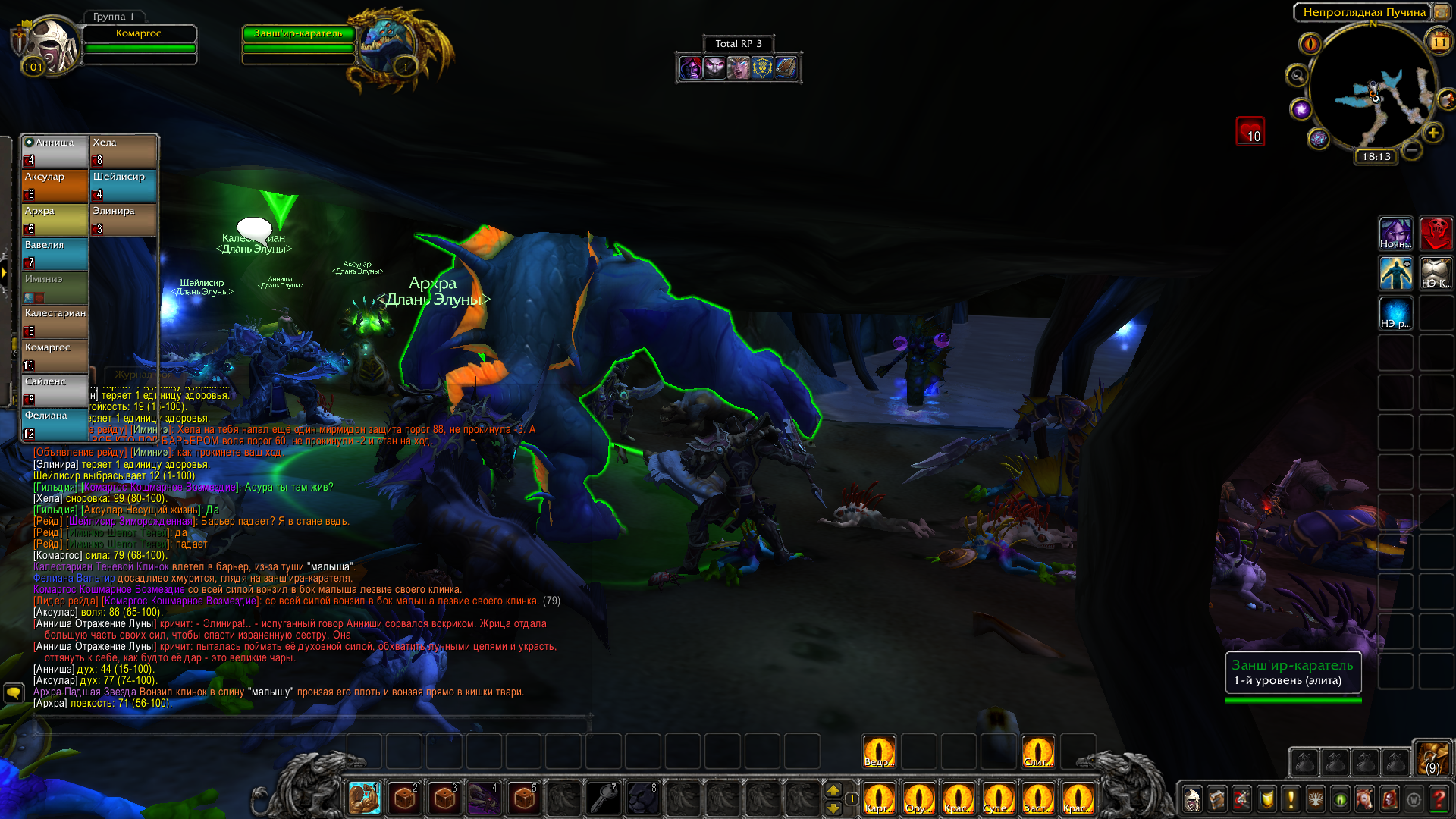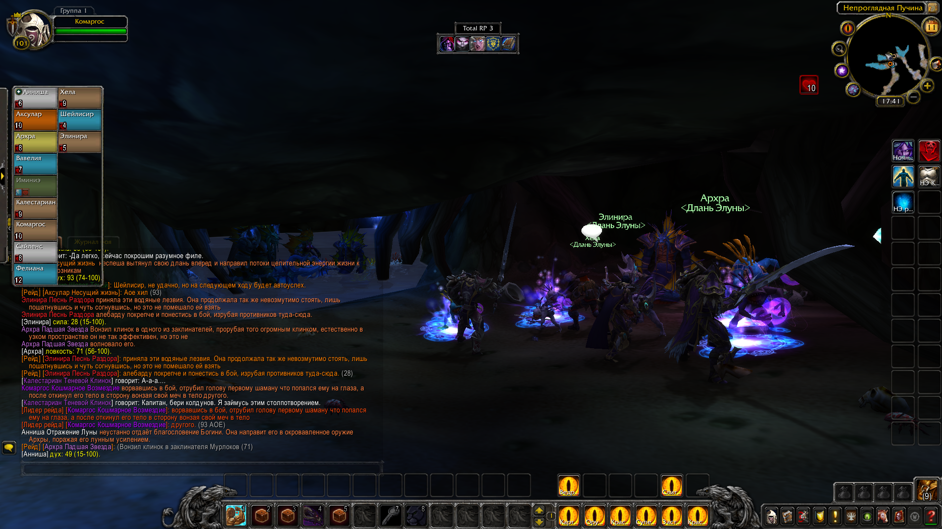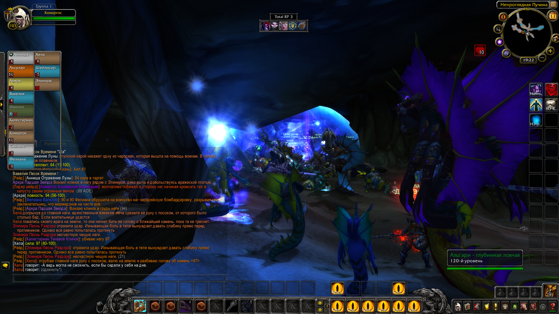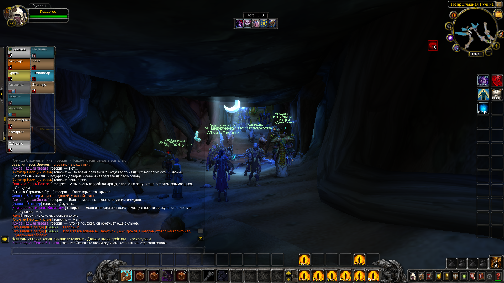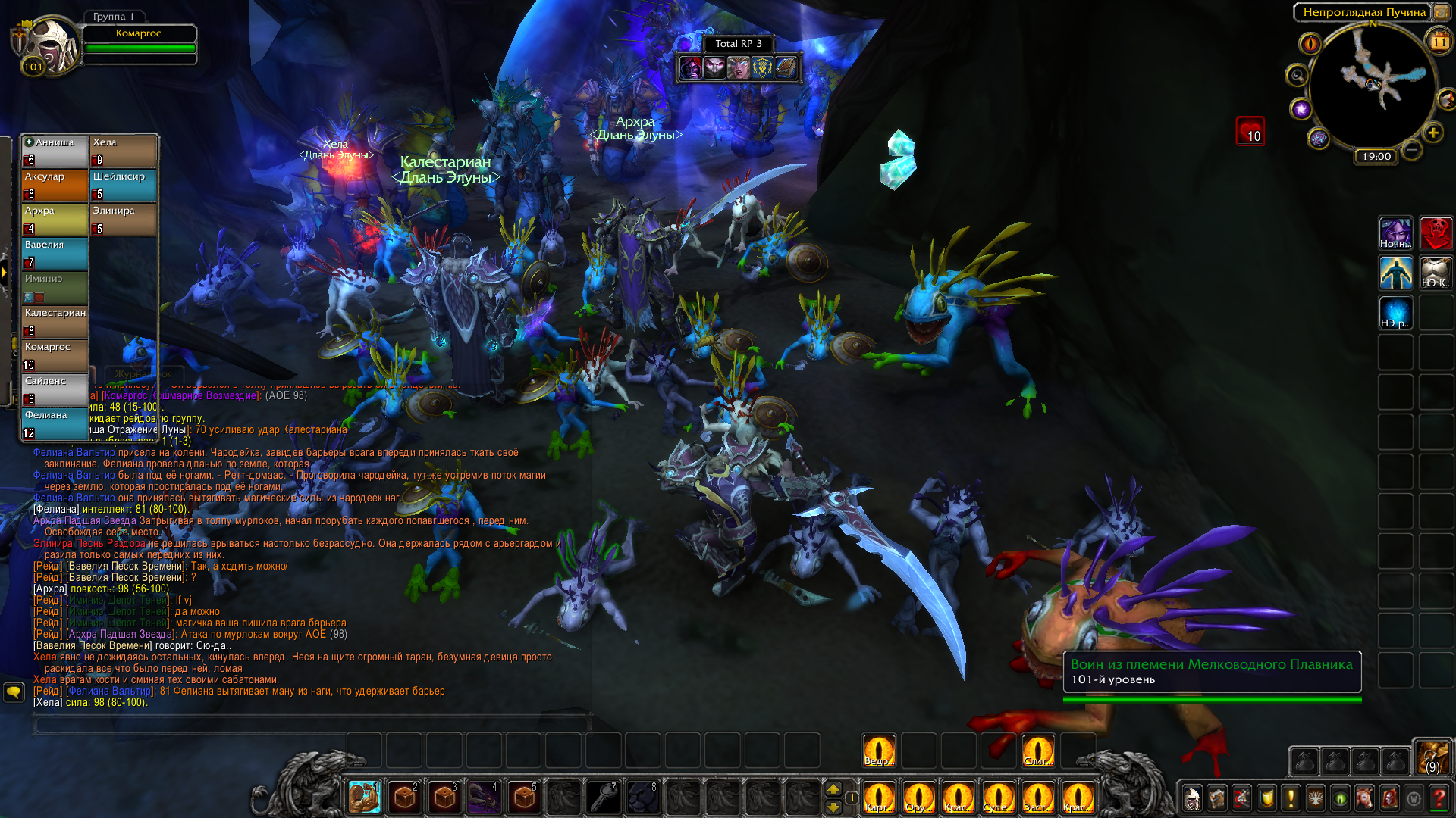 Ярость битвы была героям на пользу — воители упивались кровью, рвались в сражение первыми и не знали поражения под лунным благословением жрецов, духовно поддерживающих их в неравности боя. Друидизм отнимал боль и придавал сил, позволял не познать усталости и крушить, рубить и убивать для рывка вперёд. Многие враги убиты. Кровь залила камень пещеры. Тела наг, мурлоков и страшных гигантов намертво застыли в подземных окопах. Воды примут их и отправят на глубину с первым приливом.