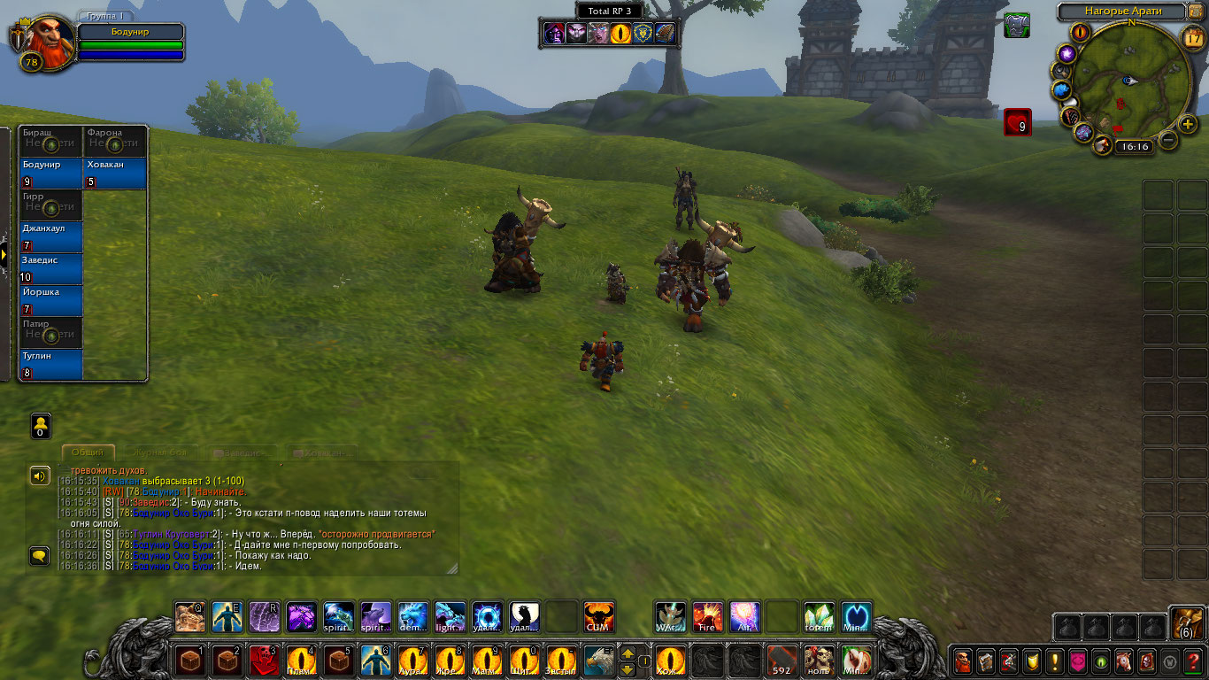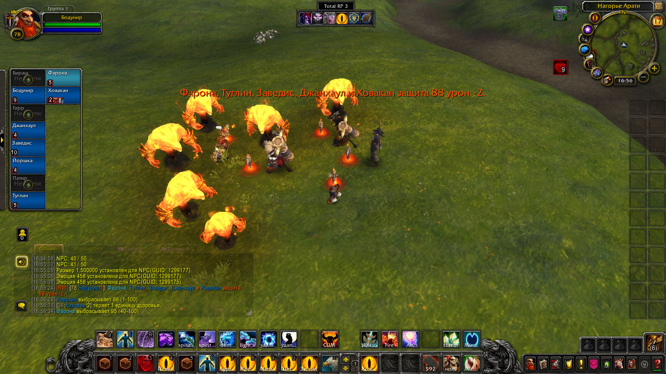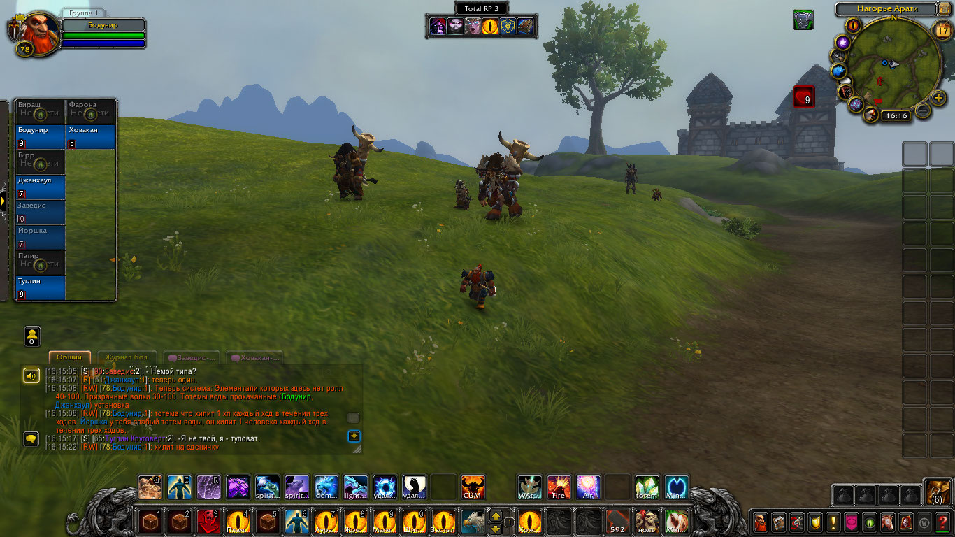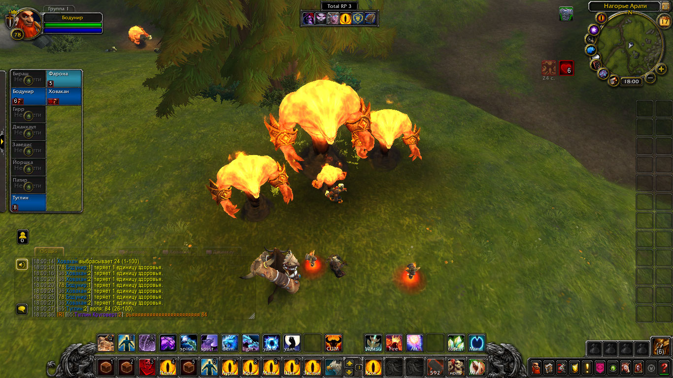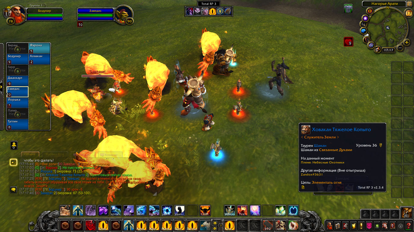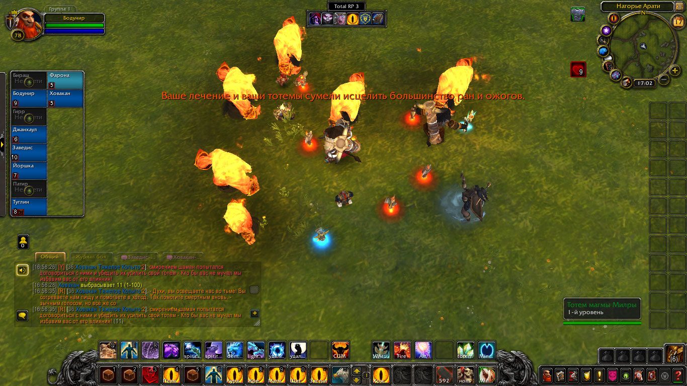 Другие же напали на Туглина и Бодунира, но тем удалось защититься. Бодунир призвал из тотема элементаля огня Фарону дабы тапомогла. Ховакан сумел договориться с одним, привести его в чувство и тот наполнил своей силой его тотем. Оставшийся же элементаль был зол, Фарона пыталась выяснить что стряслось, но тот чувствуя скорую гибель ринулся в толпу шаманов и взорвался, а его остаточная энергия была поглощена тотемами шаманов.