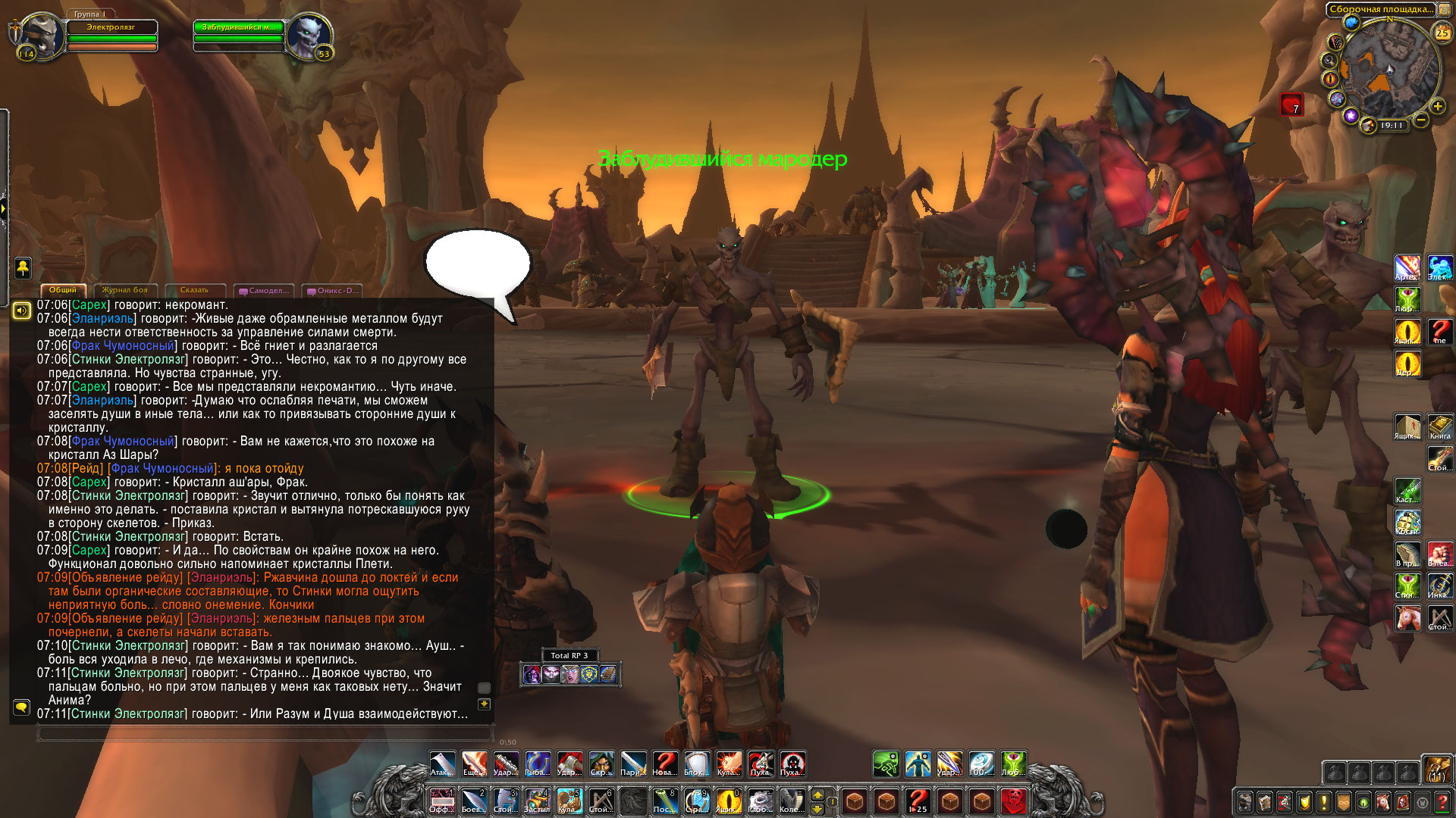 Пока Эланриэль раздавала команды, Электролязг запрыгнув на некий " стол ", возложила на нем кристалл и начала уточнять детали у Сареха, да и в целом оба ждали, пока Фрак Чумоносный завершит приготовления.