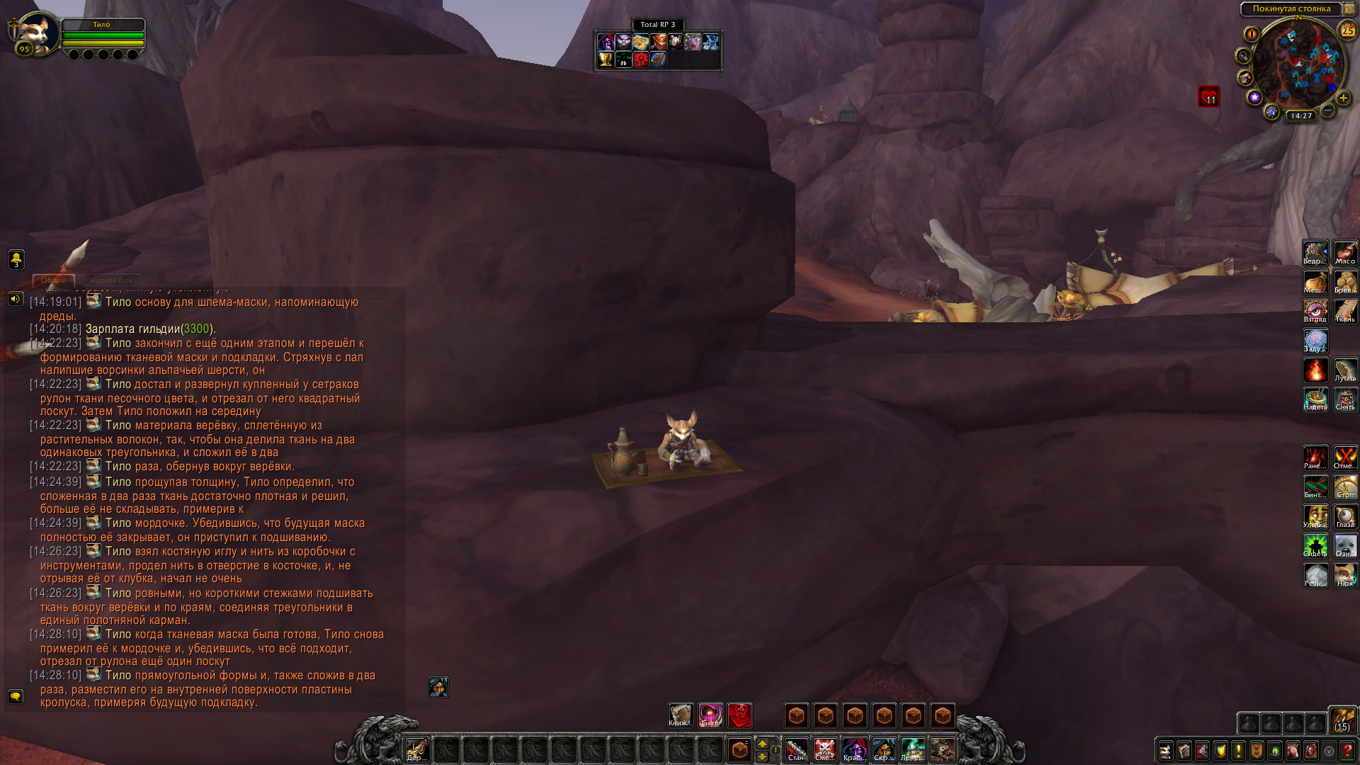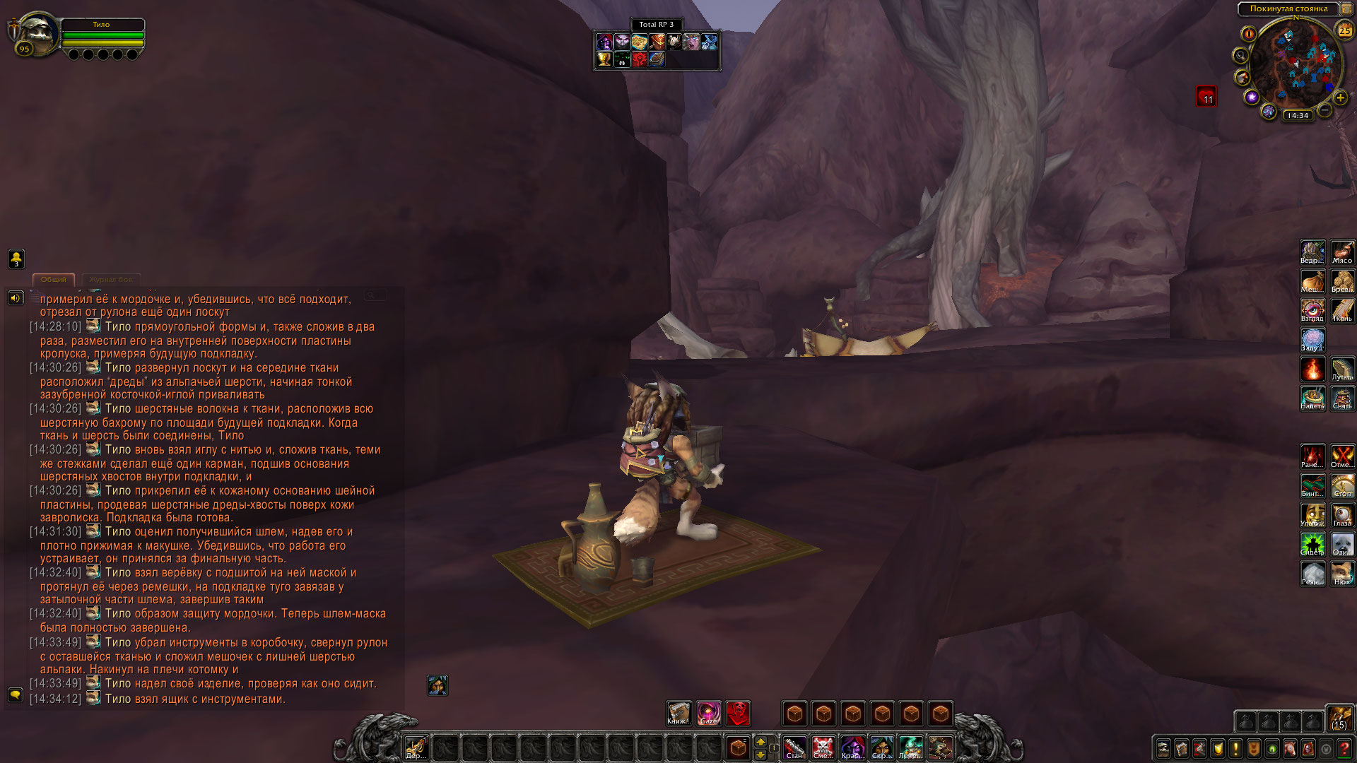 — Тило изготовил из собранных ресурсов удобный шлем-маску, получив опыт в ремесле при работе с кожей и шерстью.
