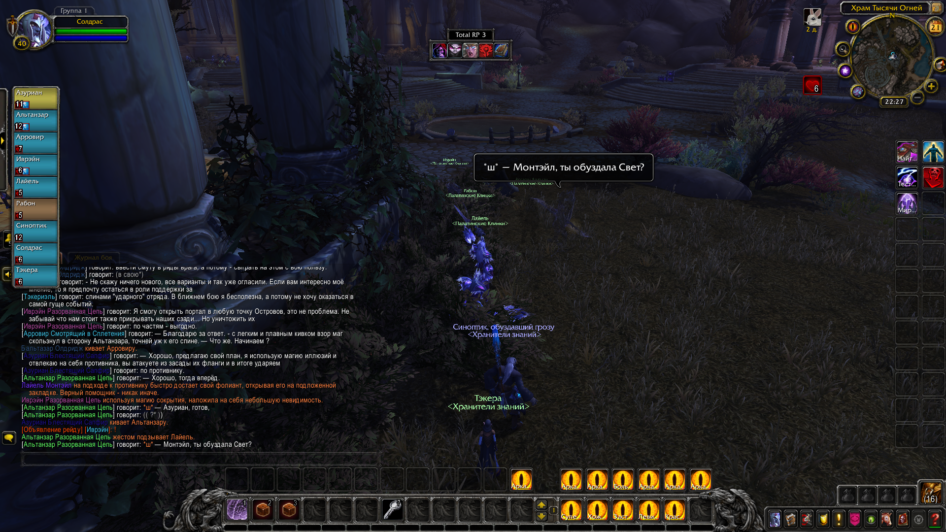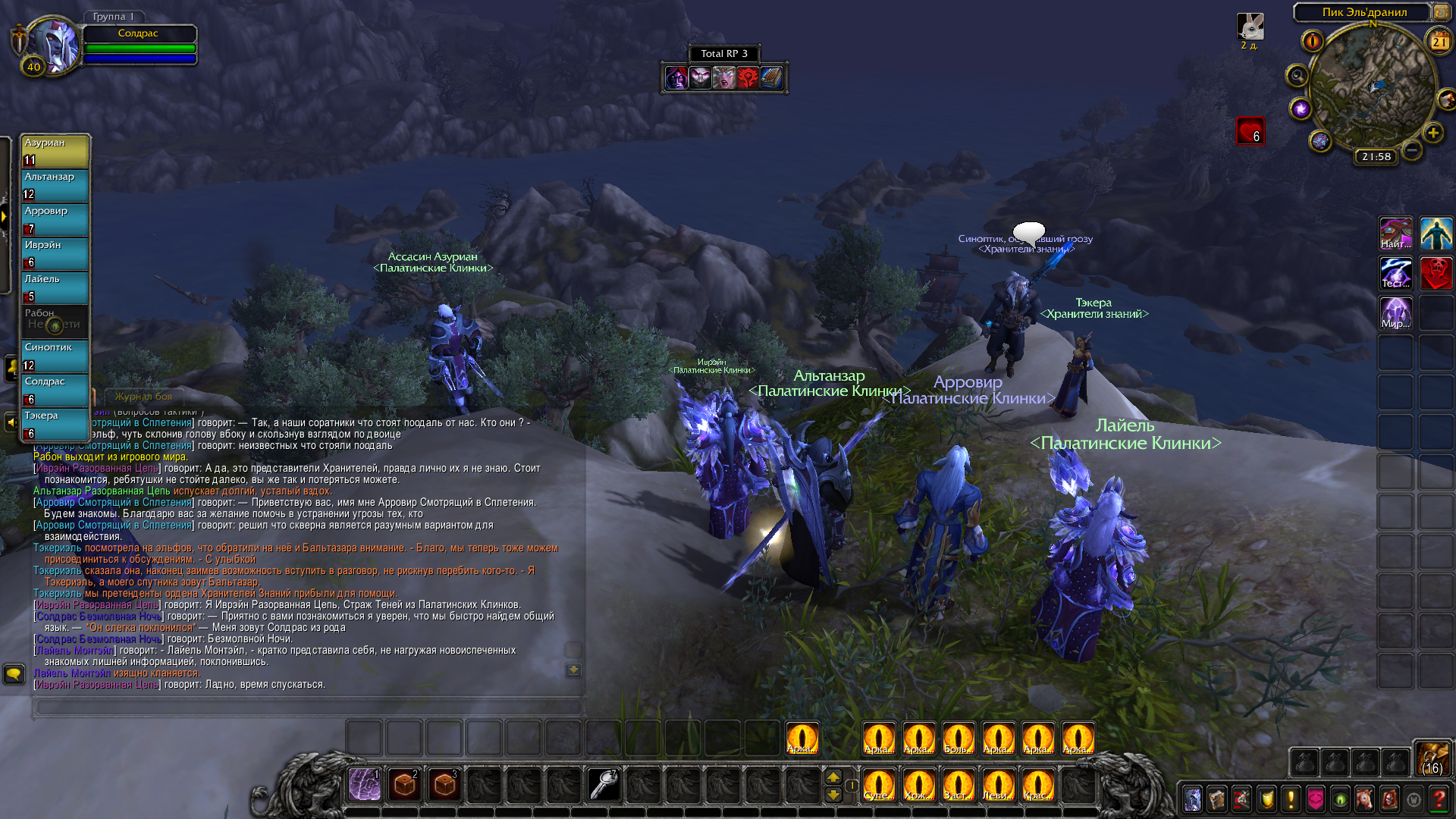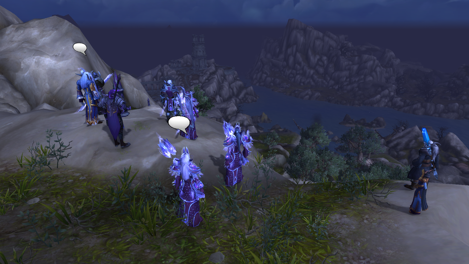 Наступивший новый день в Азсуне ничем новым не удивил отряд «Палатинских Клинков» и их новоприбывших союзников из Хранителей Знаний что сейчас представлялись ночнорождённым для удобства. Сейчас задача группы была в обследовании окружение храма что находился перед островом стражей из-за доклада дозорных, которые передали о обнаруженных там следов врага. Немедля больше группа начала спускаться вниз со своего лагеря и направляться в сторону место назначения.