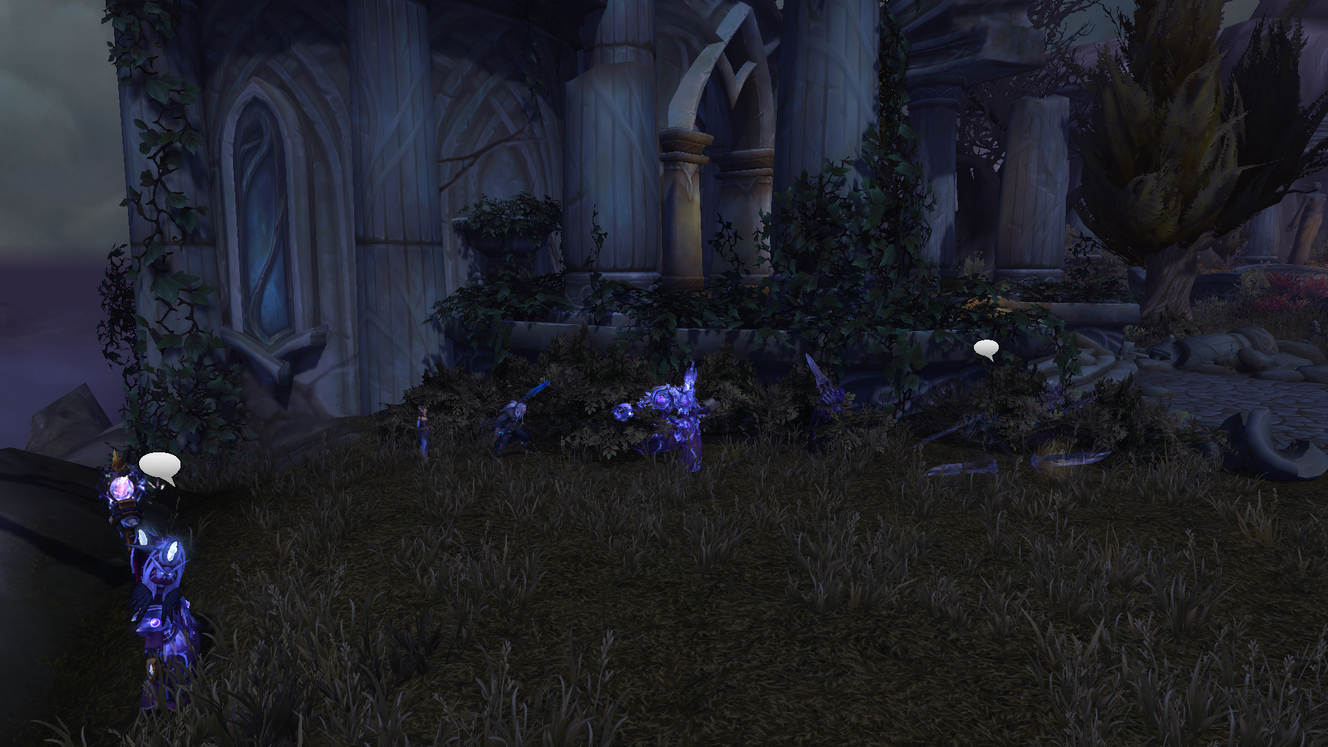 И вот медленно ступая по земле группа дошла до перепутья между основной частью Азсуны и островками что были отрезаны войной, а также временем. Приближаясь все ближе, группа начала чувствовать сильную ауру зловонья и скверны которая заставляла многих скривить свои лица от отвращения. Дабы не рисковать Арровир использовал свои силы и при помощи них высокорождённый идеально определил, что поджидало его товарищей впереди поэтому они, сокрыли себя маскировкой от чужих глаз и с осторожностью двинулись дальше. Остановившись возле дома, группа теперь могла своими глазами разглядеть своих врагов в виде толп иссохших, гончей скверны или просто стажей скверны что не заметили их. Теперь же когда ночнорождённые заняли удобную позицию вместе со своими союзниками они приготовились к началу боя что обещал выйти очень интересным.
