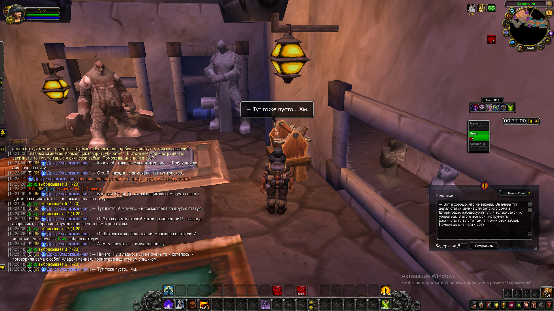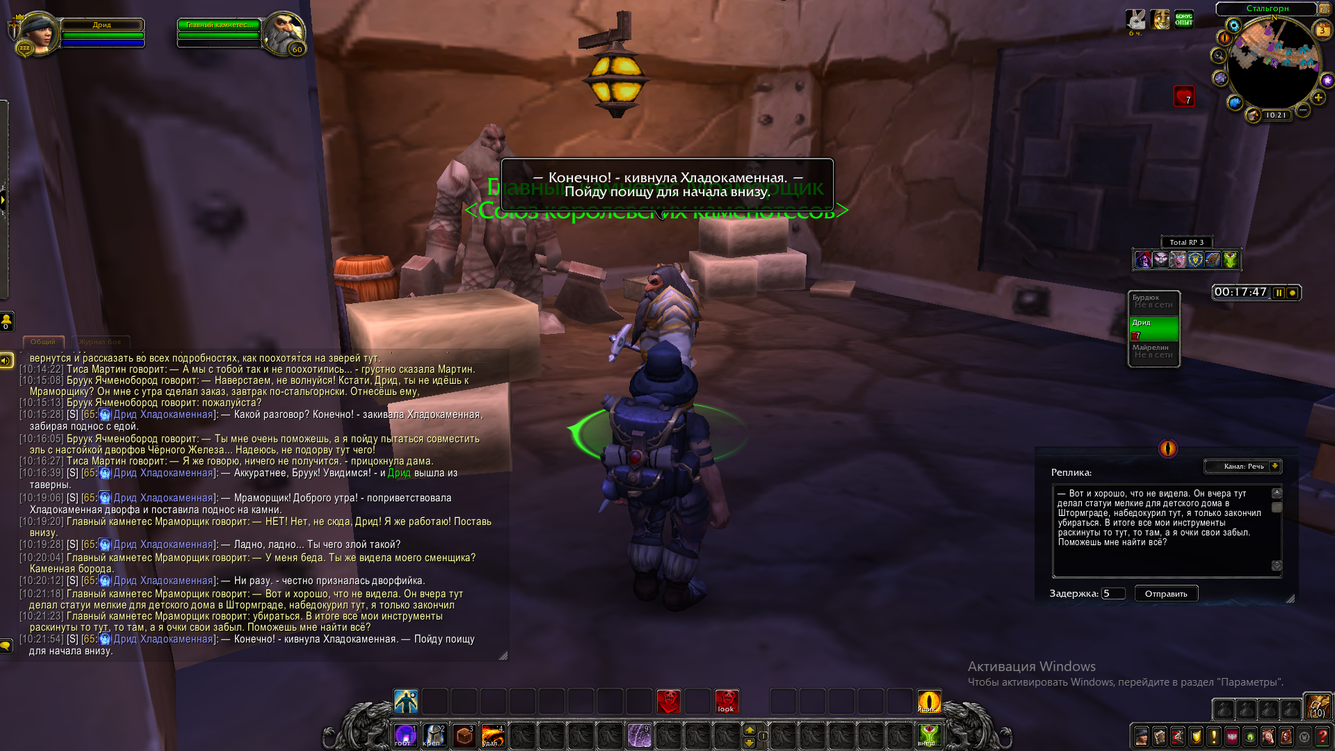 А главный каменщик всего Каз Модана был не в духе сегодня, и это ещё мягко сказано! Оказывается, сменщик его начудил и куда-то подевал все инструменты, устроив настоящий бедлам. Делать было нечего, и Хладокаменная, спустившись, принялась осматривать «поле действий».