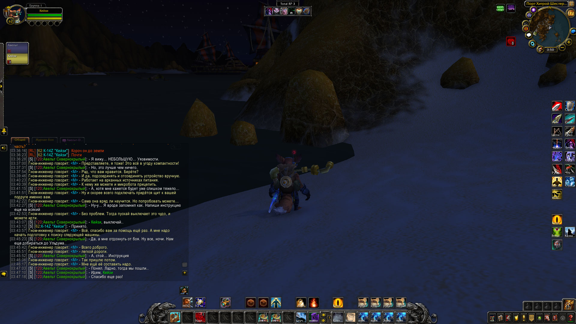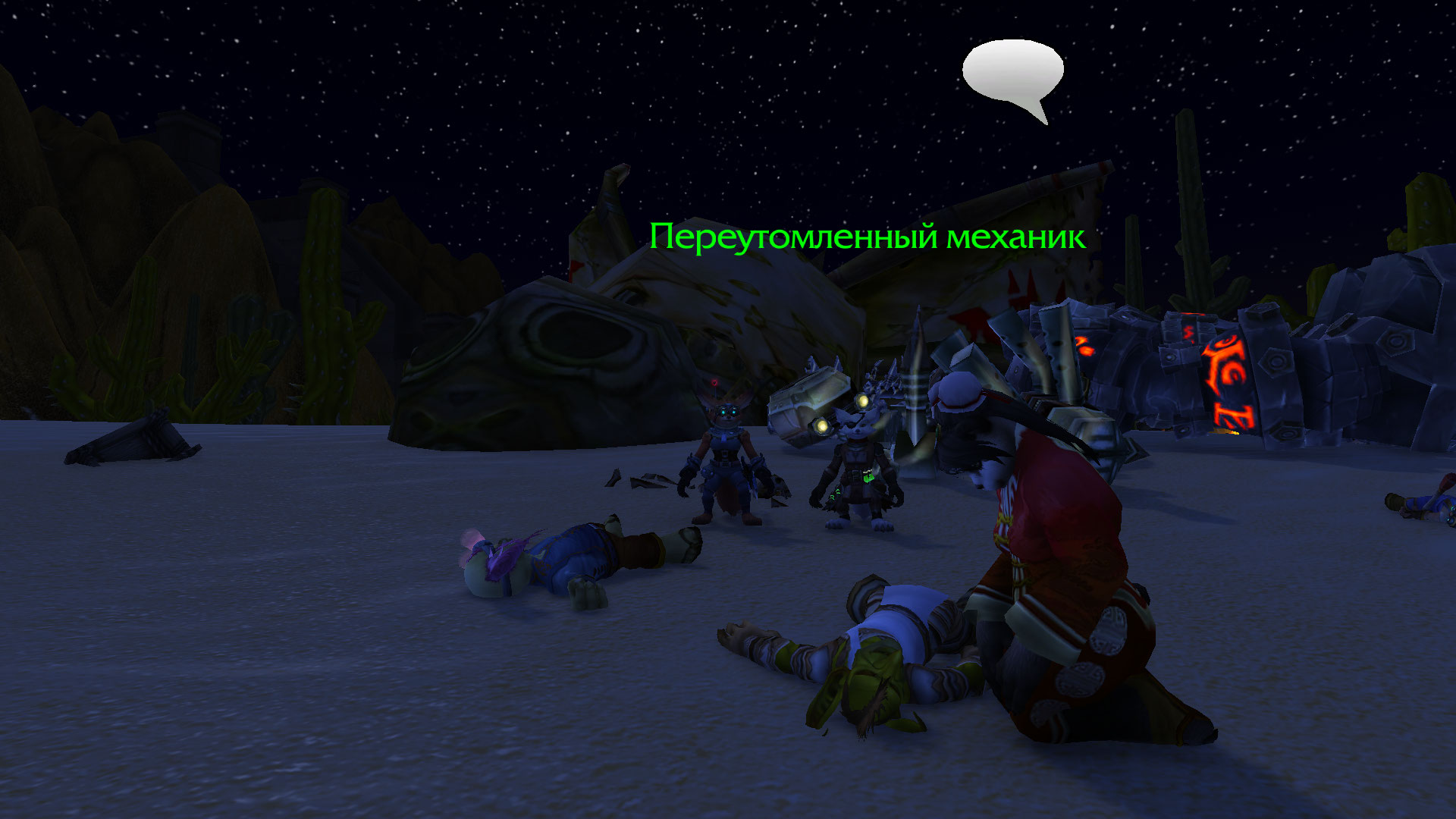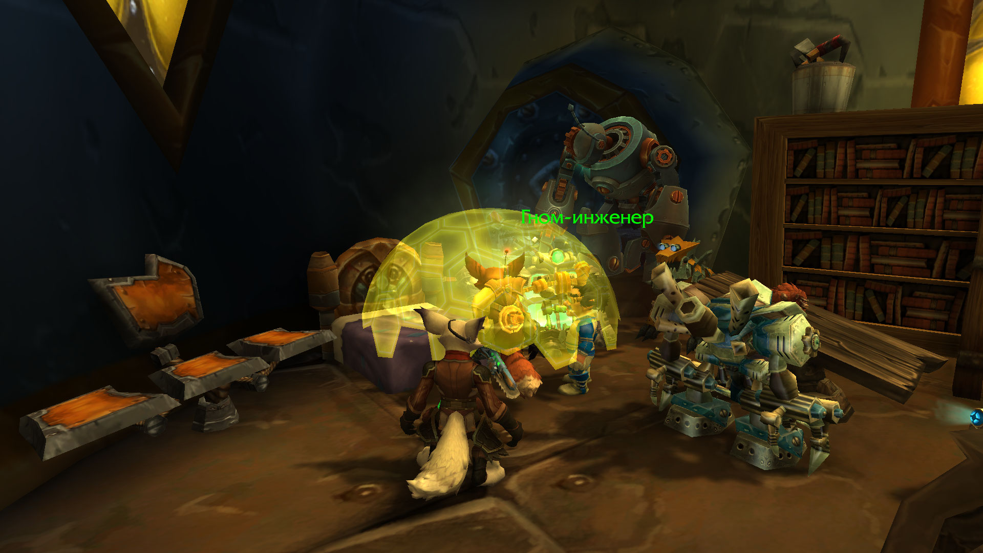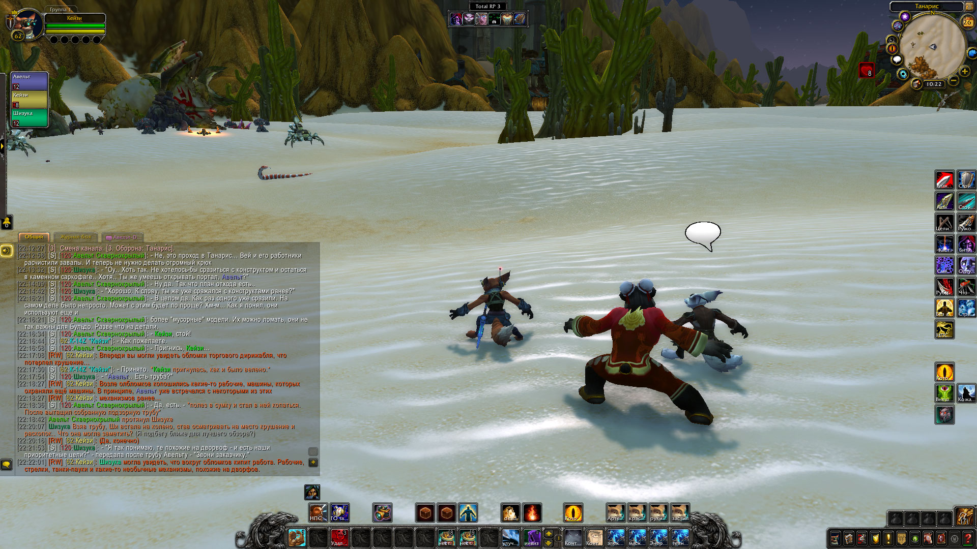 Авельт и его команда при поддержке Бульдо Быстрогона одолеть ещё одну группировку той загадочной банды, что таскает при себе кучу техники. Механические дворфы были отключены и доставлены обратно Бульдо. Гном в свою очередь позаботился, чтобы часть его изобретений была переправлена из Танариса обратно в Каз Модан, чтобы служить во благо общество. Шизука вылечила кодо по имени Бочек и помогла освобожденному из плена гоблину Ласкеру, который позднее отправился в Прибамбасск, чтобы предупредить своих боссов об этих бандитах. Авельт в ходе обыска тел убитых механиков бандитов прибрал к своим лапам крутые гномские инженерные очки, а также забрал себе электрический ошейник с пультом от него, что был у гнома-прораба. Также группа получила от Бульдо в распоряжение робота-помощника, который будет проводить полевой ремонт, а также переносной генератор защитного поля. Генератор необходимо проверить в деле перед тем, как его можно использовать в бою.