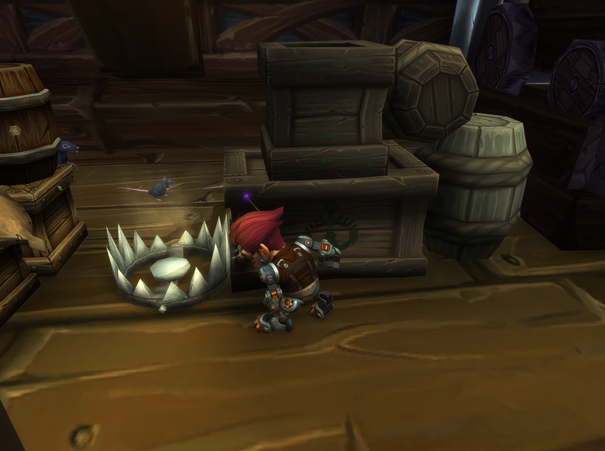 Но вернемся к учителю и ученику. Гобо с дергающийся оптикой и нервным голосом попросил Крайка медленно отступить влево и повернутся, дабы он увидел куда чуть не угодил своей лапищей. Крайк сделал, что просил от него учитель, а когда увидел мину на которую чуть не наступил, поняли и прижал уши к голове. Забавное зрелище: выражение морды массивного воргена которому стыдно перед гномом. Но это еще не все. Дабы наказать непослушного ученика, Гобо дал указание Крайку разминировать мину. Тот в свою очередь сглотнул слюну, осторожно присел с миной и коготками взялся за крышку мины и начала ее осторожно выкручивать. Благо все обошлось и обезвреживание прошло успешно. Хороший урок неосторожному ученику. Но это была не последняя ловушка. И нужно было помочь девушке, что расшвыривать крысами.