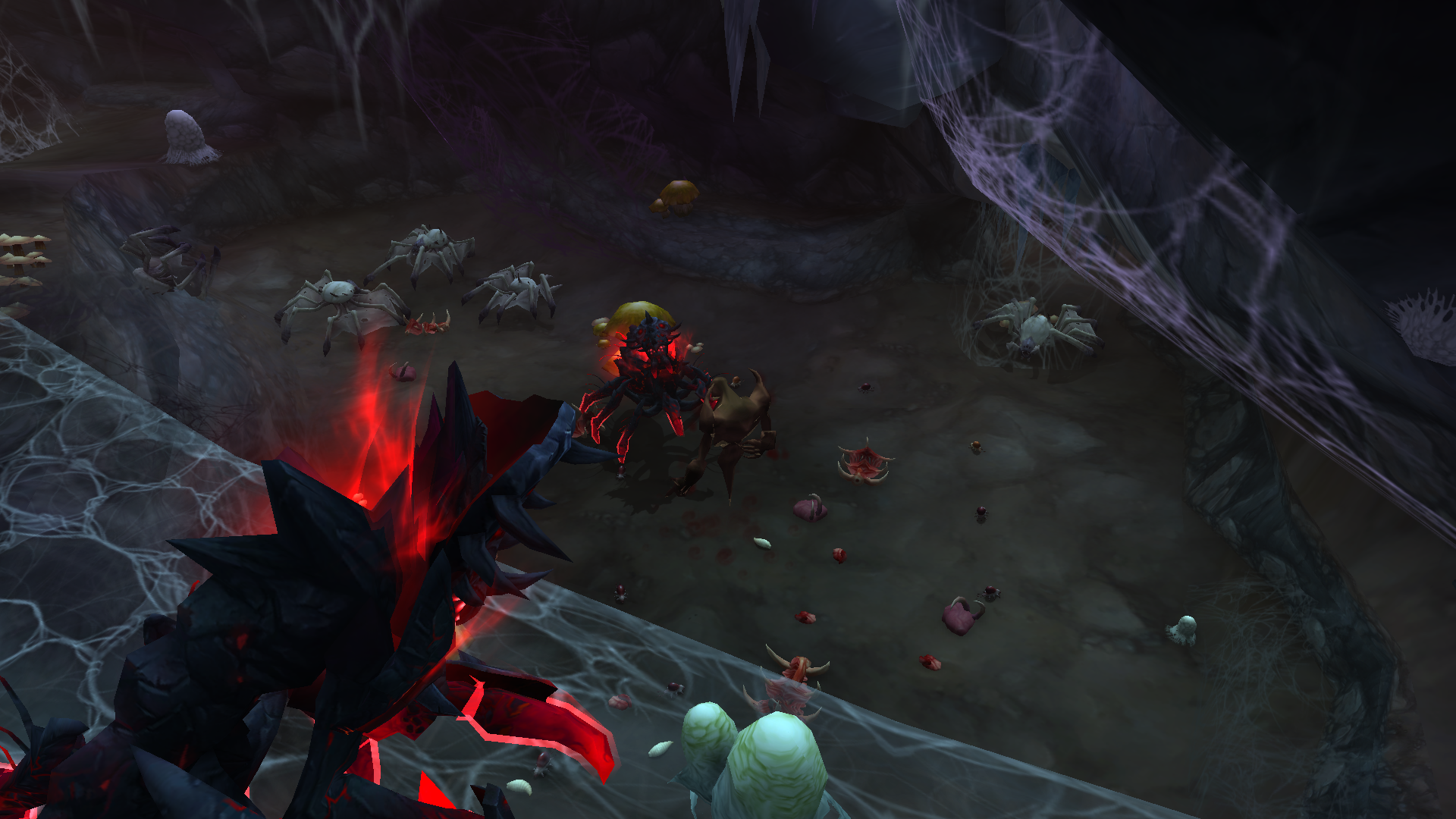 Гипфирос наблюдал за своими пауками из тени просторов пещер, следя за ростом своих творений. Этот этап развития близился к своей развязке, и их тела уже адаптировались к мутациям. Каждое существо поступало вариативно и непредсказуемо, выражая особенности своего характера. Лишь одно качество оставляло их всех едиными между собой, и это был кровавый голод. Из-за невероятного количества пауков в этой пещере, мог вырасти сильный спрос в пропитании, но только не с ними. Они имели в данном вопросе более радикальные способы выживания — поедание своих сородичей, что не смогли пережить трансформацию тела, ведь именно на это Гипфирос и делал ставку, поскольку тратить время на стройку своей экосистемы стоило бы многих ресурсов, что было весьма не оправдано, и поэтому была нужна возможность экономить силы, сопряженная с усмирением инстинктивной кровожадности по отношению к сородичам… Общество кровавых пауков было весьма специфичным, ведь никто никогда не нападал с целью убить, если только не были эксцессы, связанные с дележкой территории. Но даже это было не таким критичным как то, что все пауки умели ждать кто умрет следующим, чтобы потом сразиться за его тело. Это все вело к весьма простой иерархической системе: «Естественного метода отбора». И ей следовали все, ожидая смерти ввиду ненужности, либо достойности того, чтобы поглотить более слабых.
