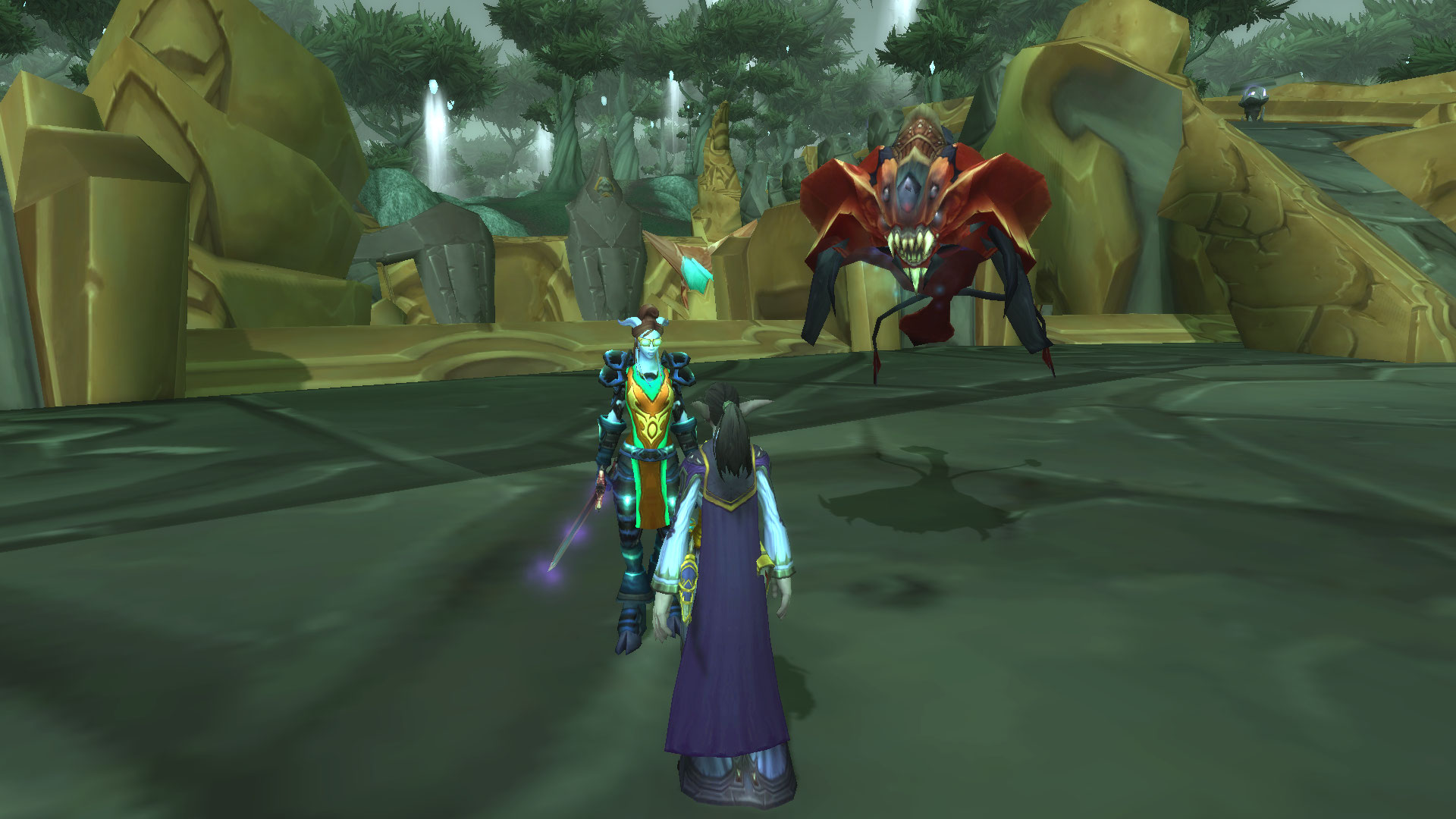Поиски информации начались с диалога. Местная распорядительница была довольно любезна, её поразили разговорные навыки собеседницы, ведь она вела диалог на их родном языке, дренейском, без каких либо проблем. Дренейка поведала чародейке, что Шаттрат это нейтральное поселение, где почти каждый может найти убежище и кров. Именно она и рассказала эльфийке об местных фракциях, среди которых выделила: Ша'Тар, Провидцев и Алдоров. Это три главные силы города, хотя в основном соперничают Провидцы и Алдоры, а Ша'Тар придерживаются нейтралитета. Дренейка выделила Стражей небес Ша'Тар, поскольку сама из их числа, они охраняют местные земли с воздуха и ведут бои с врагом своими способами. Оставалась Армия Расколотого Солнца и Нижний Город. Про первых ничего подробного сказано не было, лишь то, что это объединенные силы, которые в основном располагаются не в Запределье. Нижний Город же представляет из себя разношёрстный участок Шаттрата. Множество рас можно повстречать в нём, поскольку это главное убежище для беженцев, среди которых встречаются и мастера многих профессий. Это всё, что Хавия смогла узнать от распорядительницы, после чего решила начать свой путь с Нижнего Города.