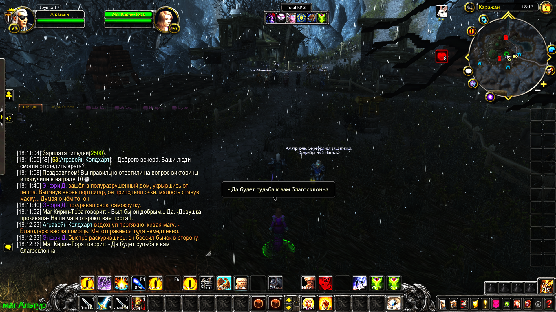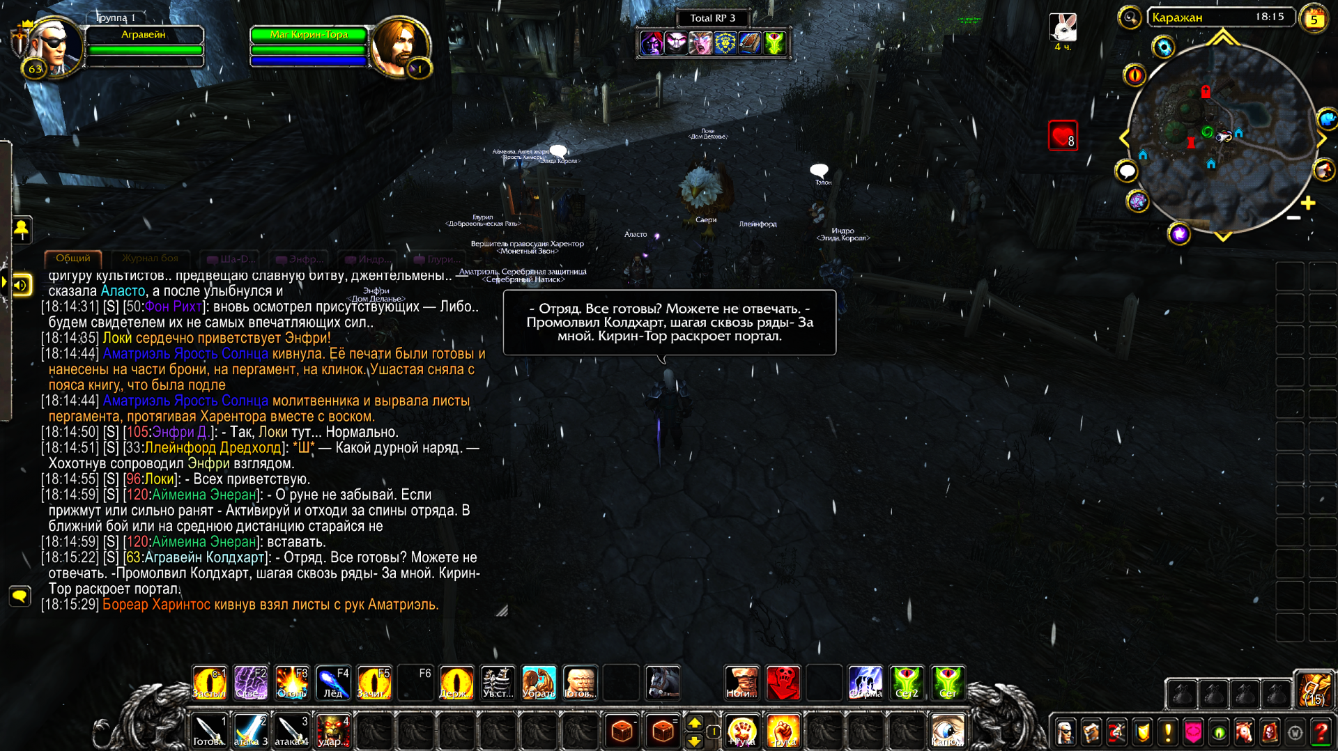 В ожидании чего-то, все столпились посреди поселения Каражан. Лорд Колдхарт вышел на видимое место и созвал героев к себе. Агравейн завёл речь, проводя краткий брифинг о предстоящем бое.