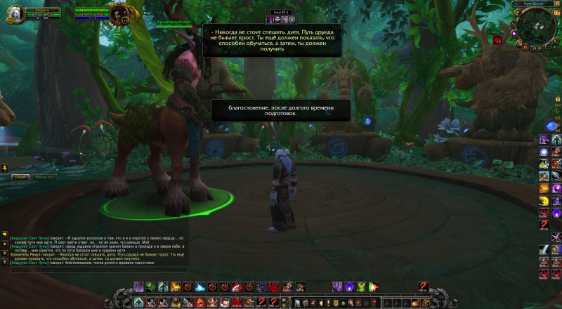Хранитель же тоже поприветствовал юного Альдурана и начал рассказывать о том, что представляет из себя путь друида. Как он непрост, каким должен быть защитник природы, что чтить и против чего бороться. Он поведал Альдурану, что друидом просто так не стать, ибо надо ещё выявить талант и способность к обучению, но само главное, что необходимо для этого — терпение. Альдуран сказал, что желает ступить по пути баланса, однако Ремул ответил, что для начала ему нужно достичь баланс в самом себе и своей душе. Юный калдорай спросил у Хранителя о том, как он может это сделать, но последний сказал, что в этом ему поможет шан`до, которого Альдурану ещё предстояло найти...