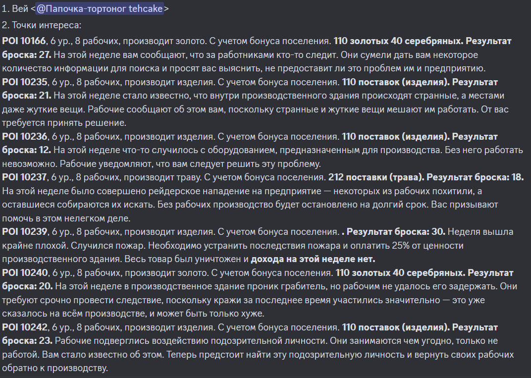 Желаемая награда: Опыт | учёт ролевых итогов | учёт события как решение крит ситуации для ПОИ: 10240 и 10242