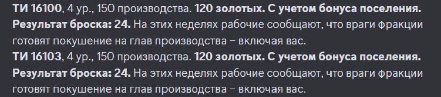 Желаемая награда: Опыт, учет ролевых итогов, учет решения крит. событий для ПОИ 16100 и 16103
