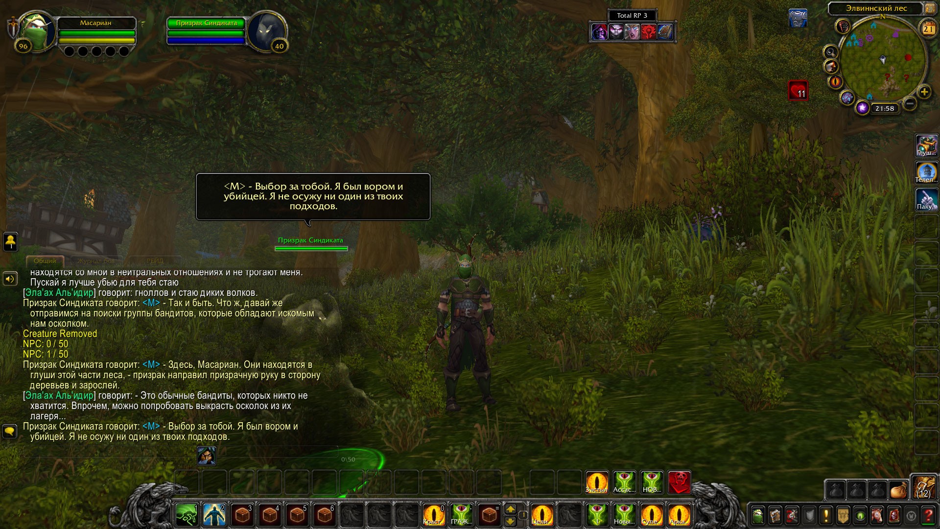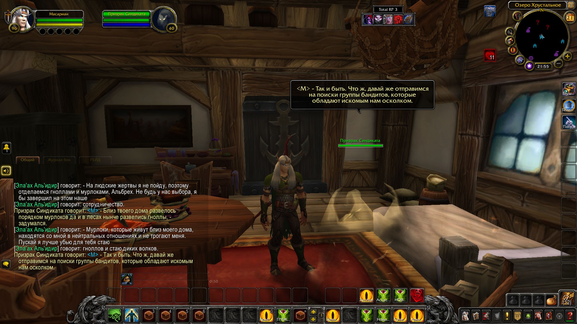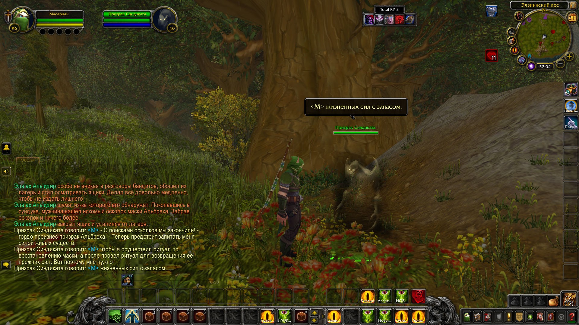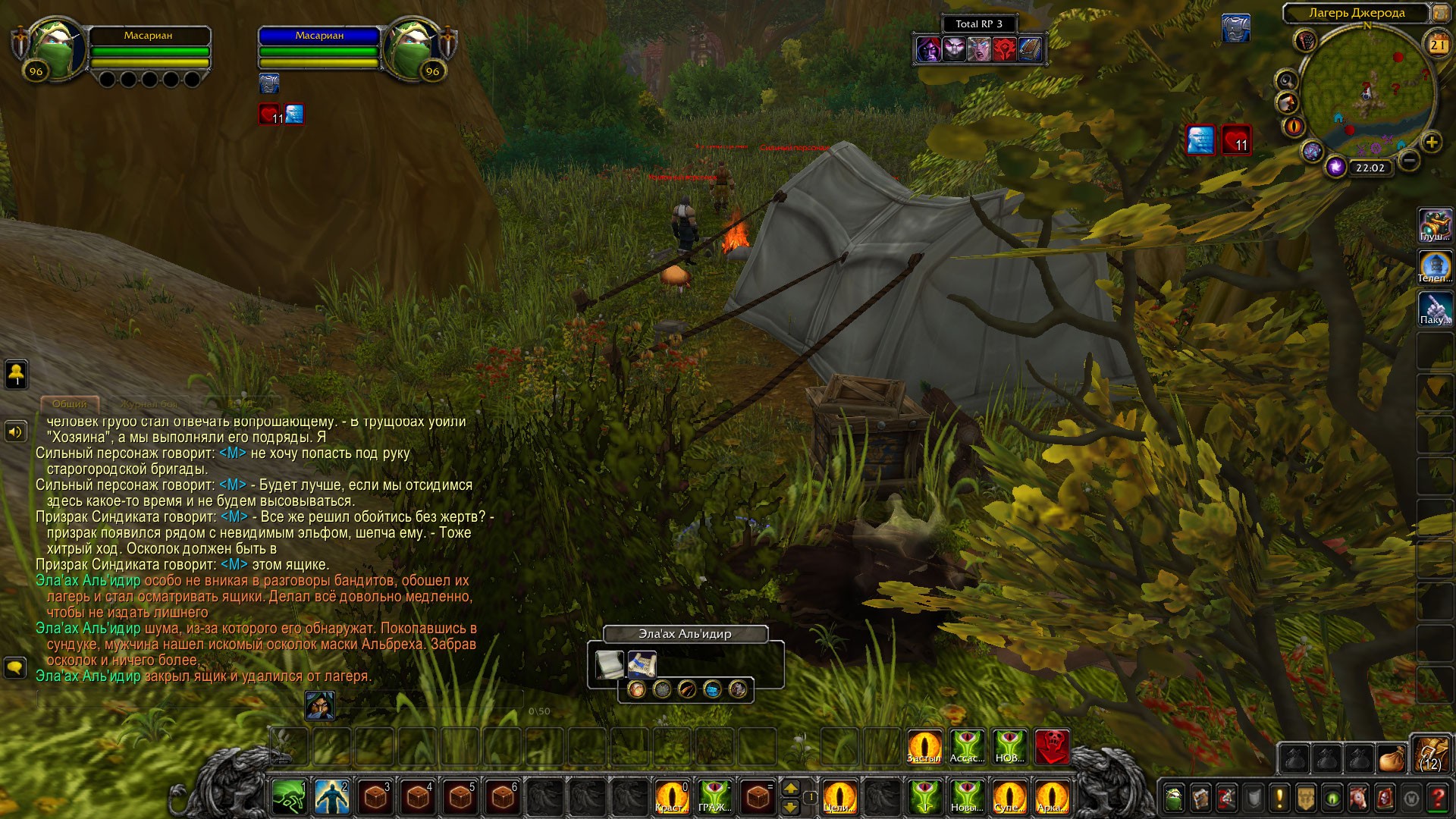 1) Масариан встретился с призраком Альбреха у себя дома. Призрак поведал эльфу о том, что последний осколок его маски находится в лагере бандитов, скрывающихся в глуши Элвиннского леса. Вдобавок к этому призрак сообщил, что ему потребуется жизненная сила живых существ для проведения ритуалов по восстановлению маски и наделению её прежними свойствами. Масариан выбрал пожертвовать призраку в будущем кого-то из лесной живности. Эльф добрался до лагеря бандитов и не стал забирать осколок у них силой и кровью. Вместо этого имелась возможность украсть его скрытно, что Масариан и сделал. Учесть создание для персонажа «Масариан» предмета эпического качества «Голова» на характеристику „+4 к духу“ 8/12.