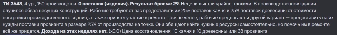 Рабочий в кузнечной лавке рассказал Златаре печальную весть. Произошел обвал несущих конструкций шатра. Кузнец предложил два варианта решения данной ситуации. Первый — самостоятельно починить навес, но данный способ был сразу проигнорирован Златарой, так как оба человека не имели достаточных навыков строительства. Второй же, профинансировать строителей, которые починят навес самостоятельно, но данный вариант был куда затратнее финансово, но интереснее для Златары. Выбрав второй вариант, Златара приказала найти рабочих и после связаться с ней дабы оплатить рабочих. Тем самым производство может работать в штатном режиме уже совсем скоро.