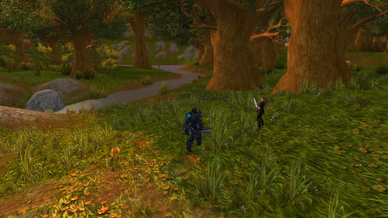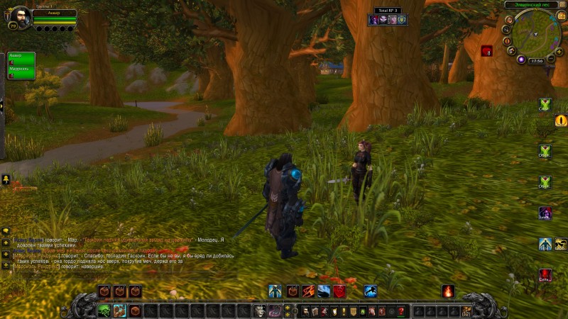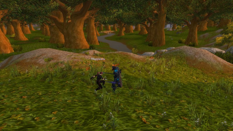 Протянув своей ученице руку, Гаскоин повёл её на поляну, которую со стороны чащи окружали лишь деревья. А вдалеке было видно окраины Златоземья. Пришло время для теста и проверки полученных навыков на практике! Первым приёмом, который мечник прокомандовал исполнить было принять боевую стойку, из которой можно было провести хоть атаку, хоть блокирование. Это получилось без особых проблем.