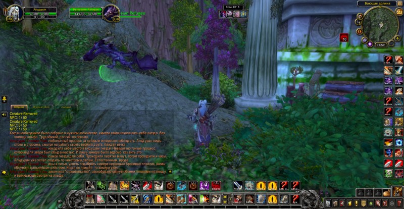 Относительно тихий и спокойный вечер. Юный воитель проводил время с химерой, думая над тем, что следует Анду-Алару обрести свой небольшой уголок, да сделать его более защищённым от будущих ударов и выстрелов противника. Он общался с химерой, а та, словно понимала его слова. Калдорай предложил Анду-Алару выстроить своё гнездо и нацепить несколько броневых пластин. Зверь дал согласие и направился вслед за Альдураном, что подманил того за собой. Взяв верёвку, эльф и химера на время покинули убежище. Выйдя, они направились к деревьям, но в разные стороны. Эльф собирал ветви, палки и сучки у древ, что были ближе к укрытию, а химера направилась чуть дальше.