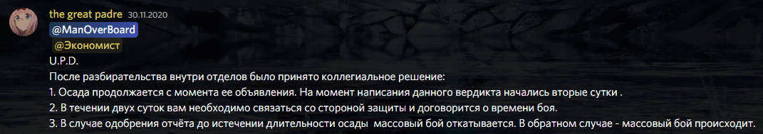 Совместно с отделом экономистов разбирался отчёт и момент с ролевыми последствиями/итогами, ибо после захвата морского судна практически сразу началось написание отчёта. В ролевом плане корабля уже не должно было быть рядом с берегами Кель'Таласа. Вместе с этим спустя час с лишним произошло объявления экономического